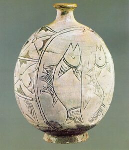 Nel periodo Joseon (dal 1392 al 1910), che è considerata l’età d’oro della ceramica coreana, gli stili principali sono: il celadon talvolta con motivi buddhisti, fiori di loto e salici, il buncheong (nella foto) una forma di ceramica in grès, la porcellana bianca semplice ed elegante priva di eccessive decorazioni in linea con i valori neo-confuciani di austerità e purezza, la porcellana “blu e bianca”, e le decorazioni incise, stampate o dipinte.