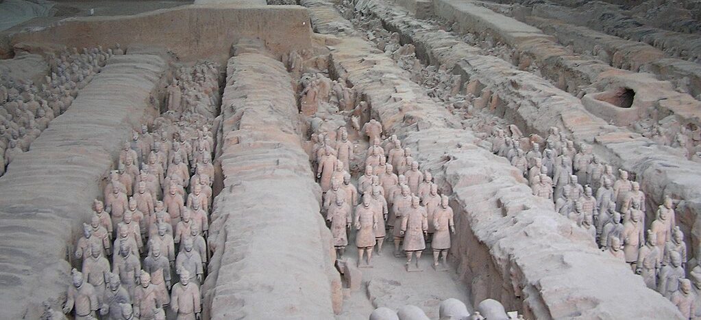 Nei pressi della città di Xi’an, capoluogo dello Shaanxi, si trova il celeberrimo Esercito di terracotta del primo Imperatore della dinastia Qin, lo stesso che volle costruire la Grande muraglia cinese, una dinastia che regnò tra il 260 e il 210 a.C.. È un’armata di creature guardiane della tomba dell’imperatore Qin Shi Huang, sono più di seimila statue sepolte, che furono scoperte casualmente nel 1974 da un gruppo di contadini cinesi mentre stavano scavando il terreno per trovare un pozzo d’acqua.